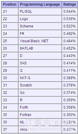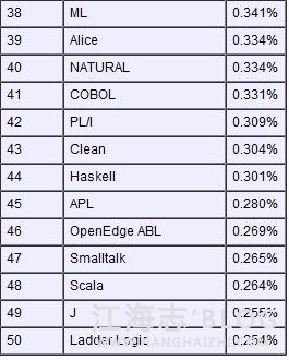 以下是前50名编程语言排名: